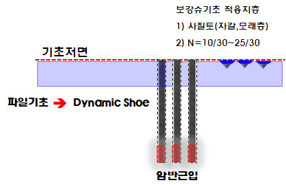Dynamic shoe공법은 다양한 형태의 보강슈를 타입하여 동다짐효과를 얻을 수 있으며,